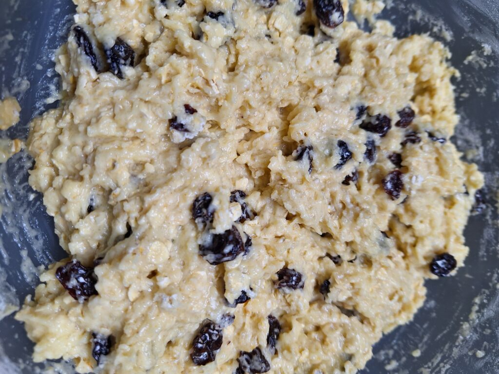 Y así, entre puntada y puntada, con el suave vaivén de la música, llego a uno de los momentos más relajantes del día. Pero antes de contarte más sobre lo que tengo en las agujas, quiero compartir contigo una receta infalible que me acompaña en estas sesiones de tejido y relajación: galletas de avena y pasas. Sí, sé que suena un poco cliché, ¡pero te prometo que son la combinación perfecta para endulzar la tarde!
