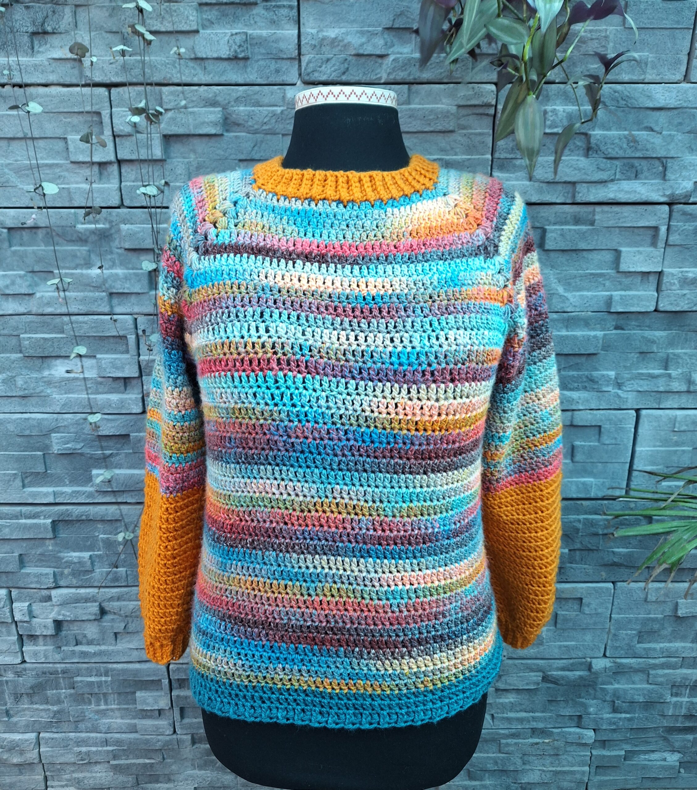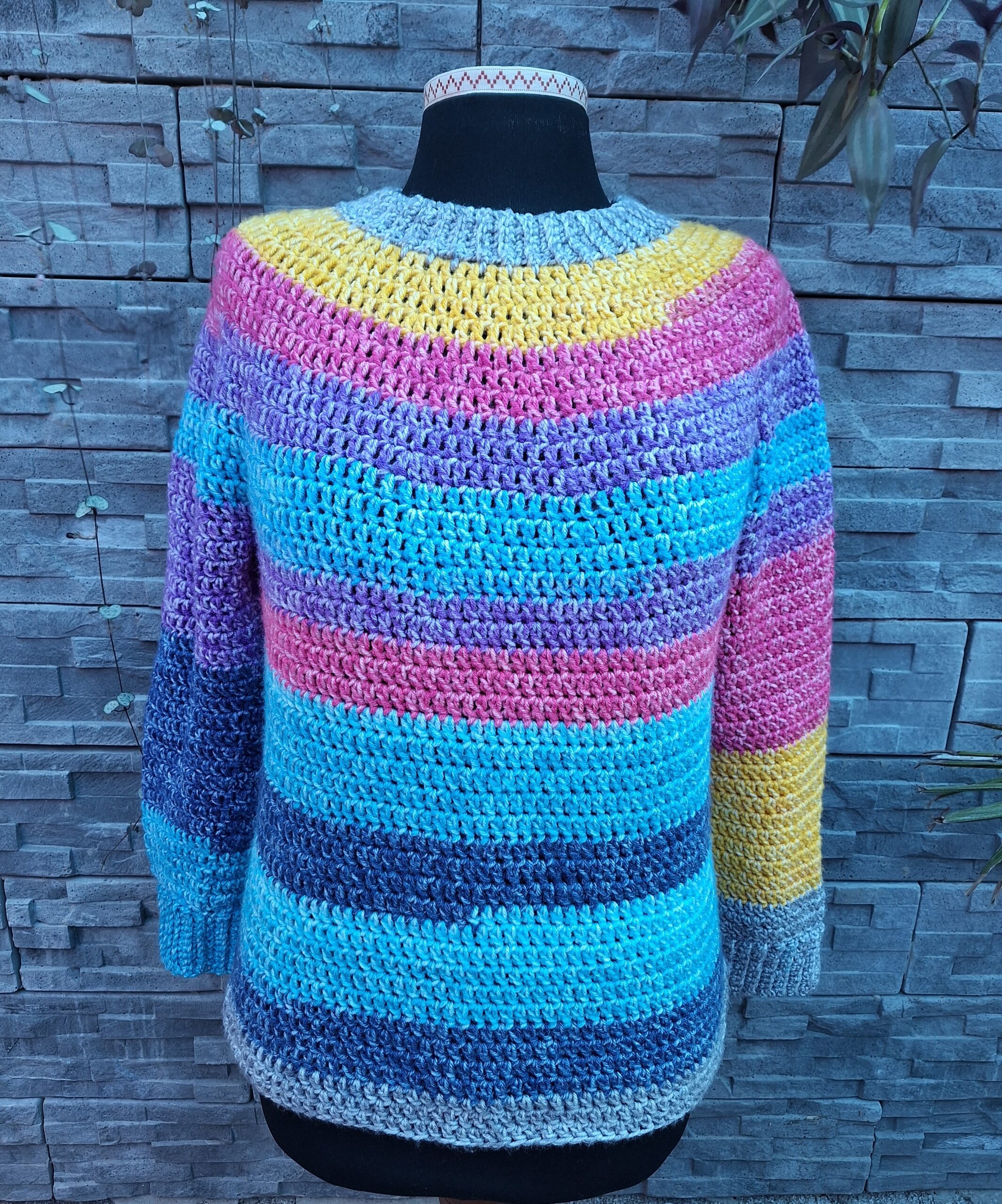 El Degrade Suéter, es un diseño top down tejido de una sola pieza con la técnica de crochet. Su construcción es muy simple y no lleva costuras. Tiene detalle de punto fantasía en su construcción, lo que le dará el toque especial a tu prenda.